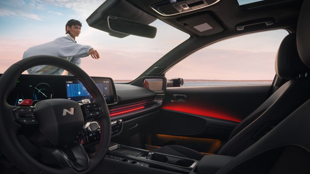 aunā IONIQ 6 salonā ir atrodama jauna dizaina stūre un uzlaboti durvju apdares materiāli, kas piešķir ekskluzīvāku sajūtu. Viduskonsolei ir pilnveidots izkārtojums ar uzlabotu funkcionalitāti un lielāks klimata kontroles ekrāns ērtākai lietošanai.