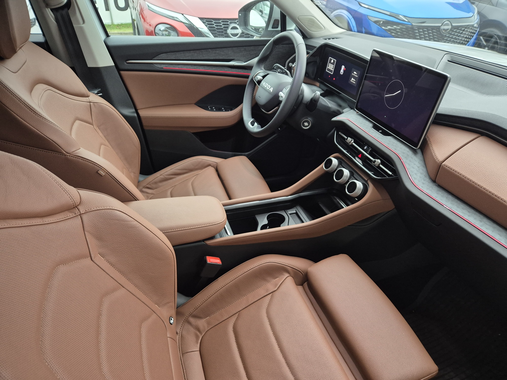 Interjers “Suite Cognac”: perforēti sēdekļu pārvalki no ādas/mākslīgās ādas brūnā krāsā (EW), prekšējā paneļa un priekšējo durvju dekoratīvā apdare „Suite Cognac“